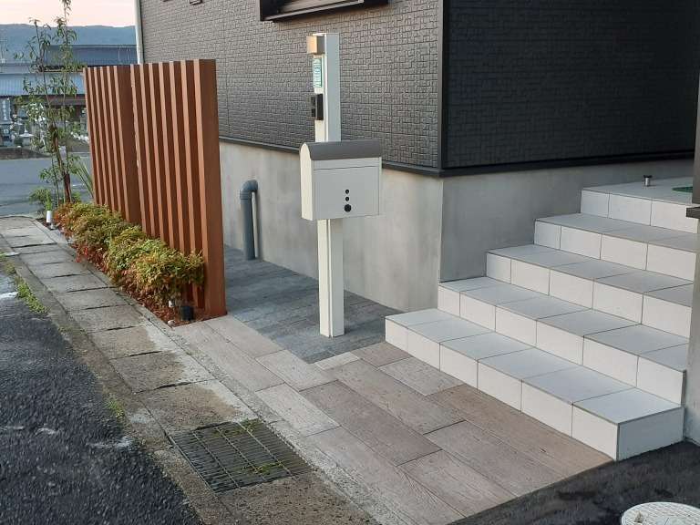 愛知県北名古屋市で外構工事を行いました。 施工前はフェンスを基調とした門構えでしたが、今回住まいの第一印象を高める門構えになりように施工…